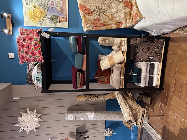 - un important lot de décoration (lanternes, photophores, paniers, miroirs, suspensions), linge de maison, tapis, vases, vaisselle, petit mobilier, fleurs artificielles