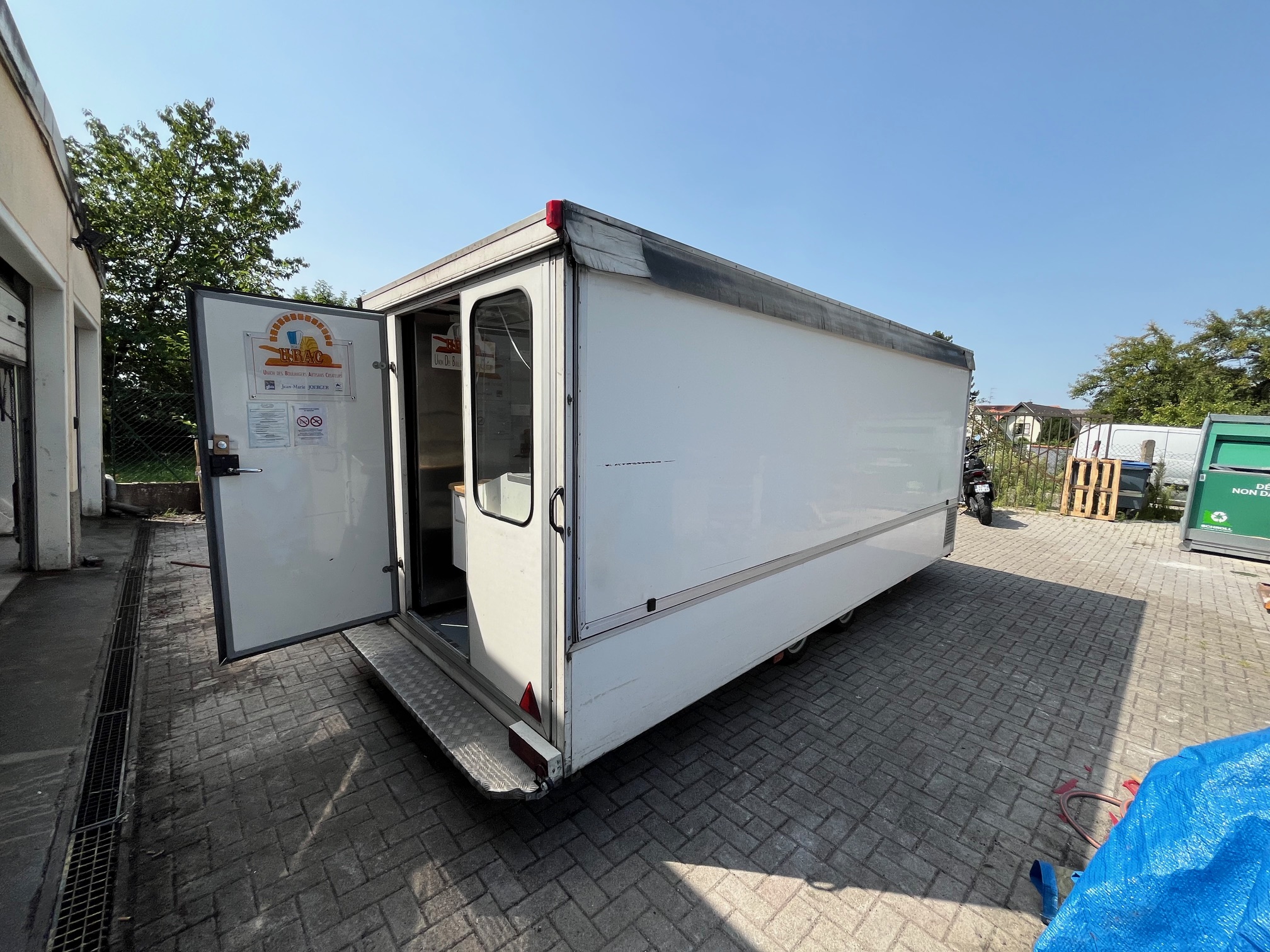 – remorque METAL REMO, 1ère mec, remorque de marché équipée : armoire froide, meuble réfrigéré, caisse