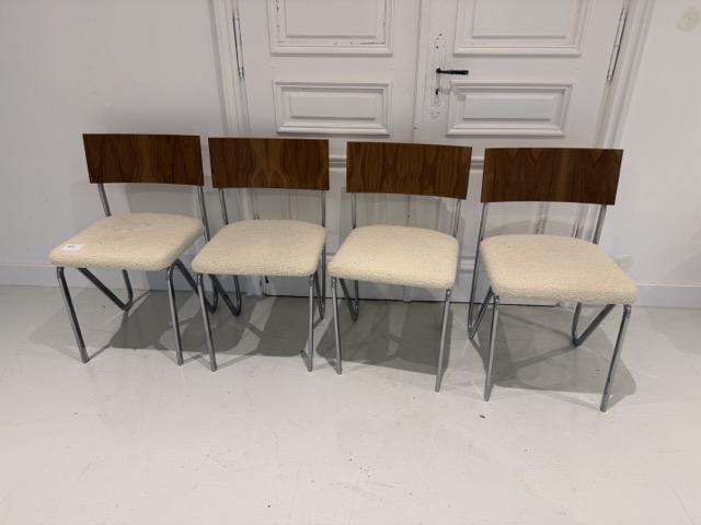 89 4 chaises acier chromé et noyer
