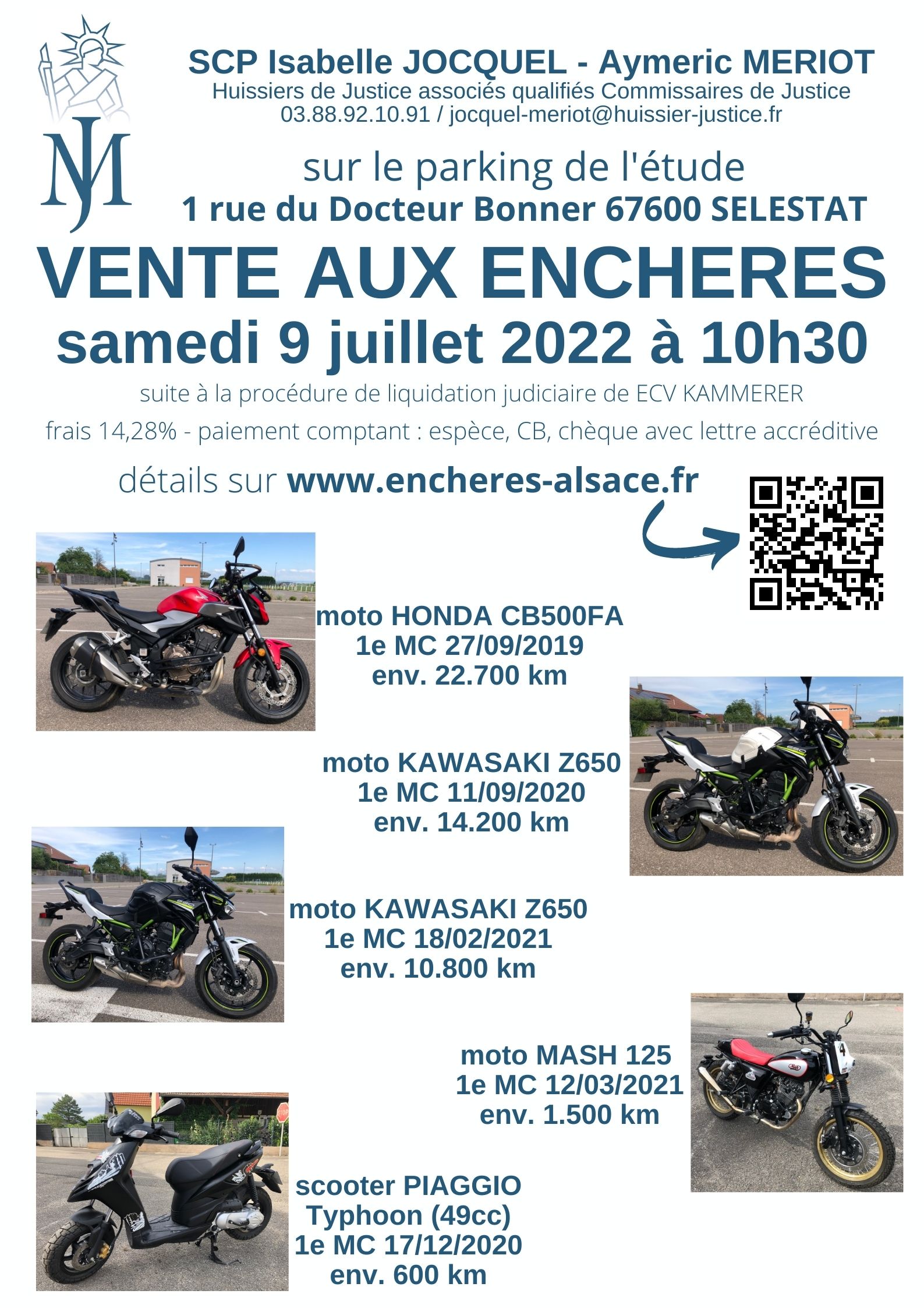vente aux enchères des véhicules 2 roues suivants :