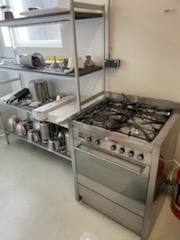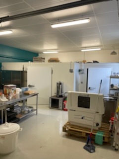 - cuisine (mobilier + ustensiles) - chambres froides - imprimante pour étiquettes - 2 éviers, déserte, tables inox - palettes avec bouteilles - four SMEG 4 feux - appareil UV GERMI AP 36