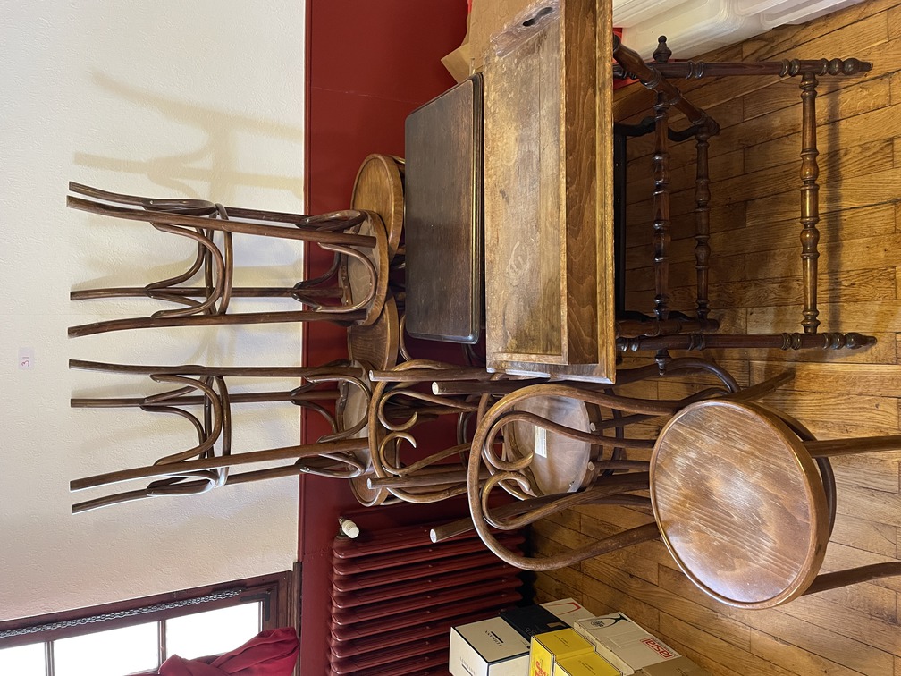 31 5 tabouret de bar + chaises style Thonet + petites dessertes en bois