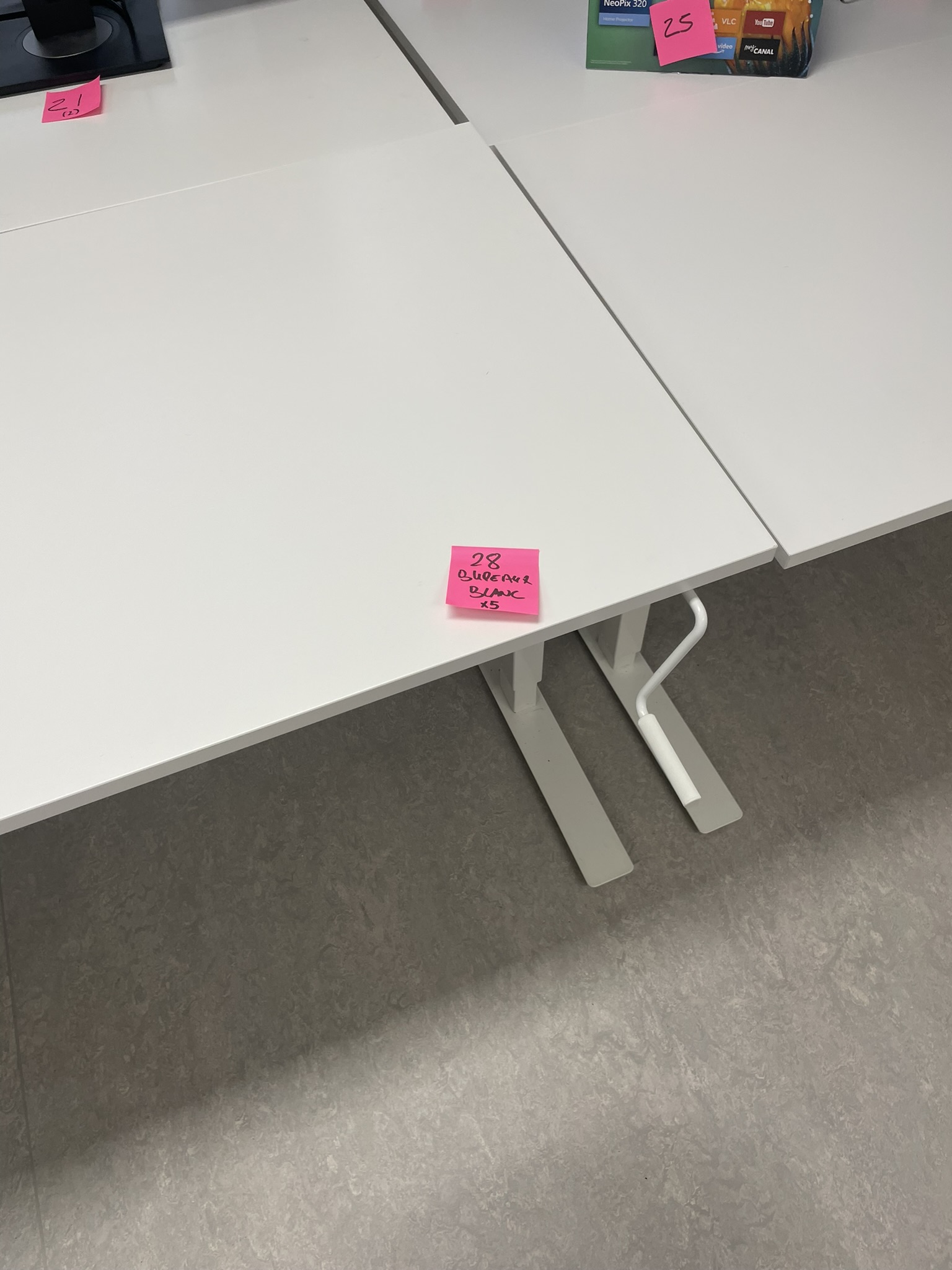 28- lot de 5 bureaux "blanc", pouvant être utilisé en position "débout" à l'aide d'une manivelle manuelle