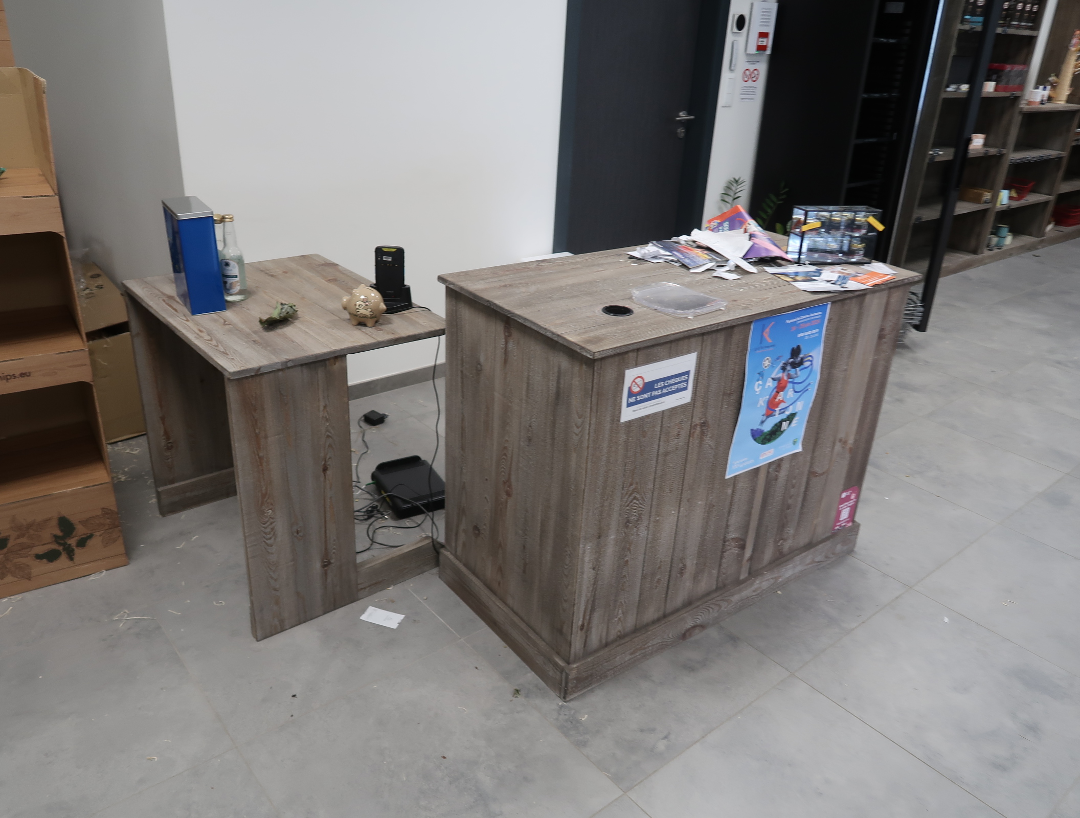 04 Comptoir caisse en bois comprenant deux plateaux et 1 tiroir