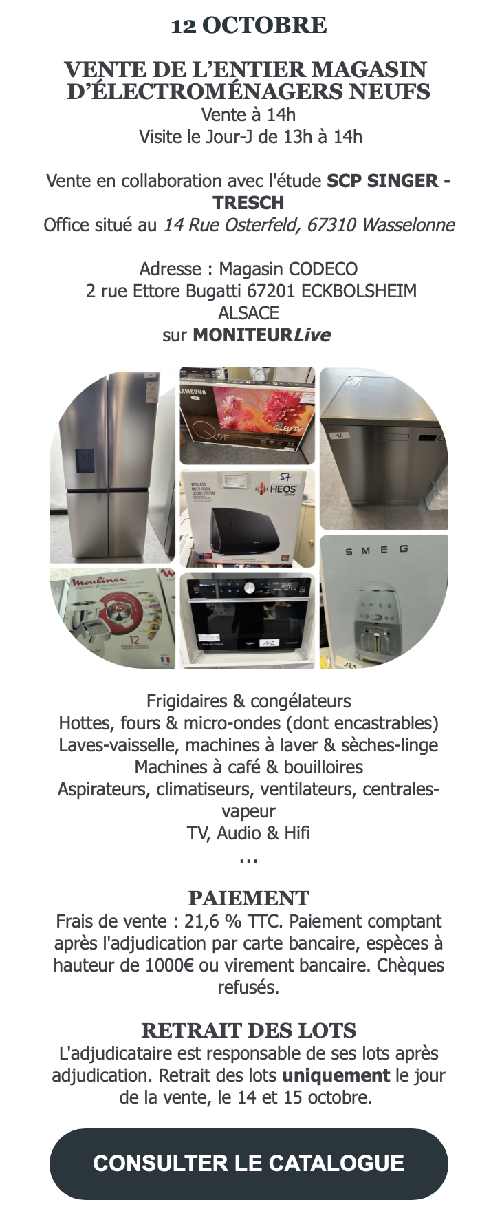 VENTE AUX ENCHERES D'ELECTROMENAGER NEUF SUITE CESSATION D'ACTIVITE