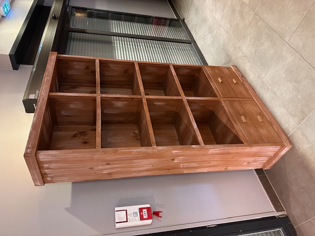 - 1 meuble présentoir en bois