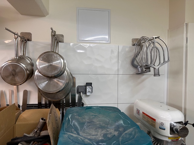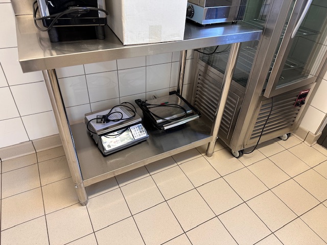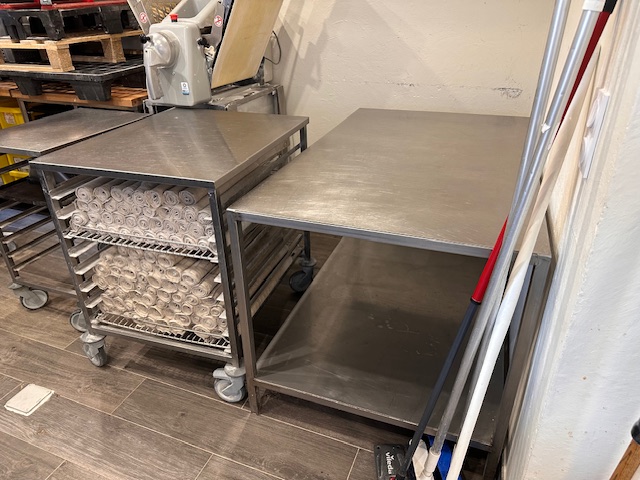 - 1 table en inox, rangement